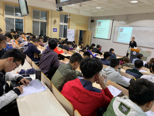 晚间,全体人员转至校内西餐厅,Julian Fisher带领大家进行了英式酒吧竞猜(British pub quiz)活动。同学们随机分组,就不同主题的竞猜题目进行了测试。内容涉及英国历史事件、文学作品、建筑标志、风土人情和中英两国政治、经济、文化交流合作以及双边关系展望等。同学们全情投入,愉快自如地参与互动,大厅里笑声、掌声、欢呼声此起彼伏。大家普遍认为,该学习方式新颖独特,过程轻松愉快,对新学习知识点的印象格外深刻,创新意识在不知不觉中得到升华。创业就业能力日系列活动取得圆满成功。