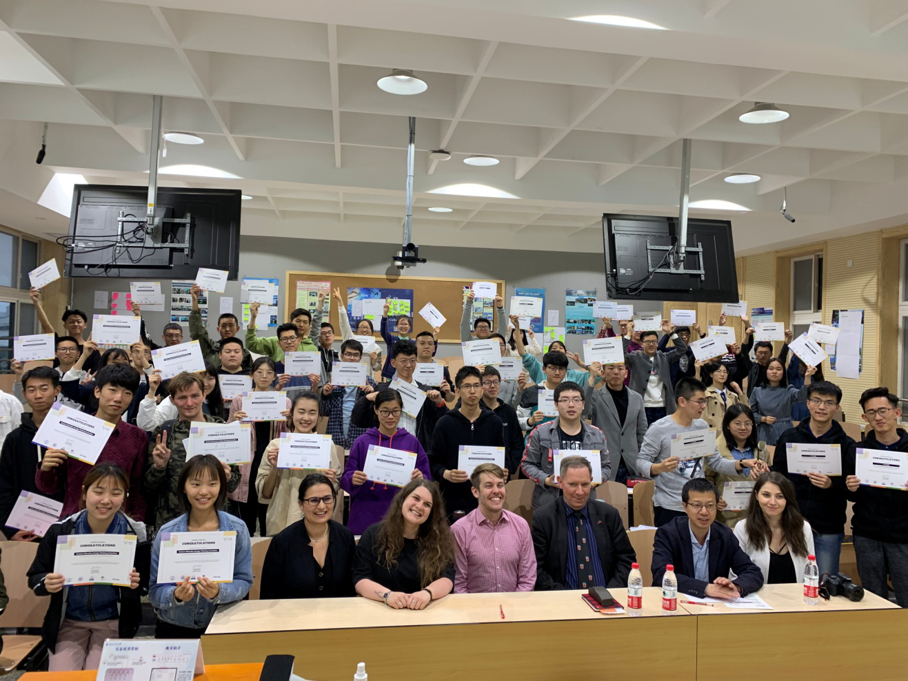 在专家引导下,同学们参加了关于创业潜力的自我评估测试,通过答题了解自己是否具有主动迎接挑战、实现更高远事业目标的内心追求,高质高效完成任务的领导力、组织力、执行力和团队精神,以及主动接受新生事物、思维方式灵活变通的创新意识。经过测试,大家对在创新创业方面的潜力、优势和不足有了更清晰的认识。在此基础上,同学们打破个人局限,与陌生同学组成全新团队,针对不同主题集思广益、头脑风暴,从零开始进行创新设计并形成视频成果进行评比,最后经评委投票选出最佳作品并进行简短的颁奖仪式。经培训,同学们的创新意识和创作热情得到充分调动,设计过程和成果展示得到专家们的高度赞扬。同学们纷纷表示通过此次活动,不仅泛学新识、广结朋友,而且对自身的创业潜力、性格特点和创新思维能力有了更深刻的认识,为今后学习工作中更有针对性地开展创新创业实践、实现自我提升奠定了良好的基础。