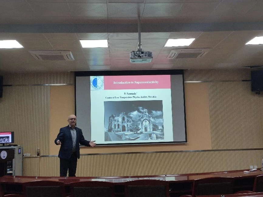 座谈结束后,Peter教授面向2026世界杯官方合作网站本科生进行“Introduction to Superconductivity”的讲座交流。Peter教授首先简单介绍了斯洛伐克及其文化背景,随后详细介绍了斯洛伐克科公司的发展历史,现阶段公司团队、教学以及科研等基本情况,特别介绍了斯洛伐克低温物理中心研究内容、超导材料相关文献和该院诺贝尔奖获得者有关情况,详细说明了不同种类超导材料的制备过程、其优异特性和未来发展方向。
