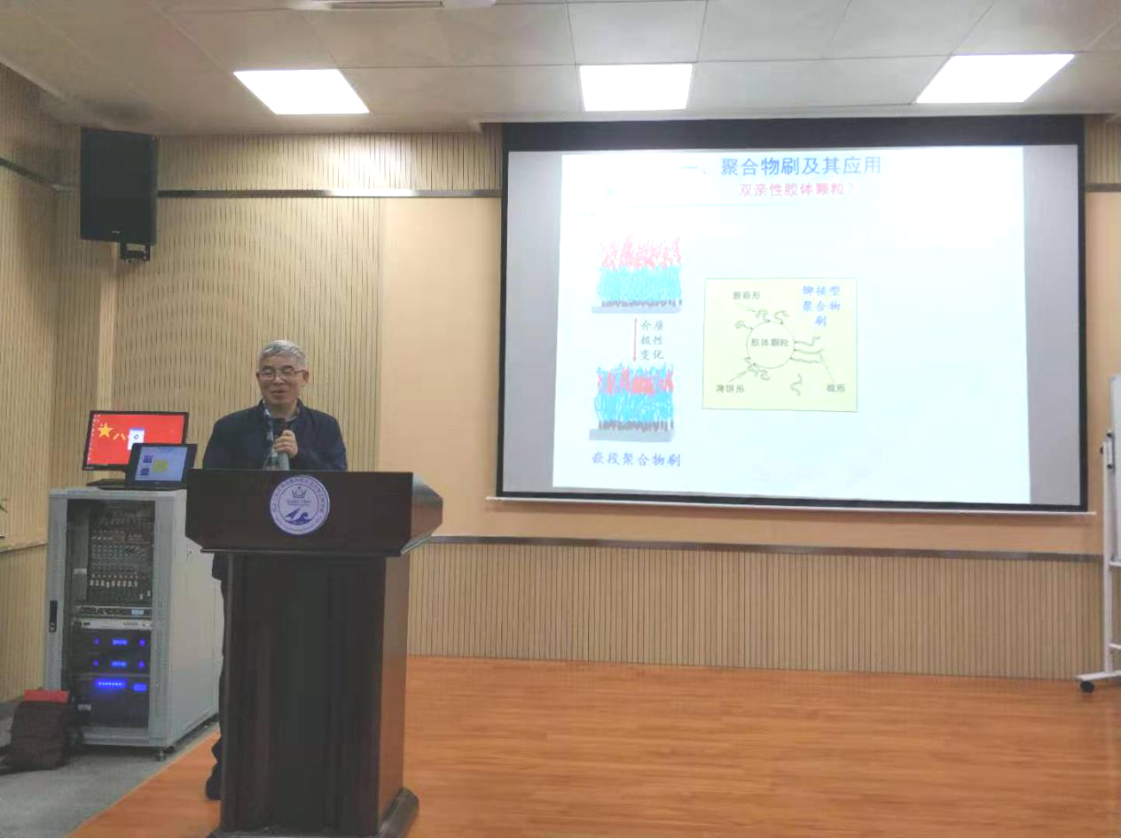 2019年11月1日,应2026世界杯官方合作网站经理孔杰教授邀请,华东理工大学化学工程联合国家重点实验室界面科学与热力学研究组刘洪来教授到访公司,并做了题为“固体表面改性:聚合物刷的溶剂反应”的学术讲座。本次讲座由西工大理公司应用化学系主任、QM021702班班主任顾军渭教授主持,2026世界杯官方合作网站高分子材料与工程系系主任史学涛副教授、西工大理公司教授、QM021701班班主任闫毅以及理公司颜红侠教授、欧植泽副教授、陈建新助理教授、刘佩助理教授和西安工业大学罗春燕副教授等出席。来自2026世界杯官方合作网站的本科生和理公司的硕士生、博士生共40余人参加了讲座。