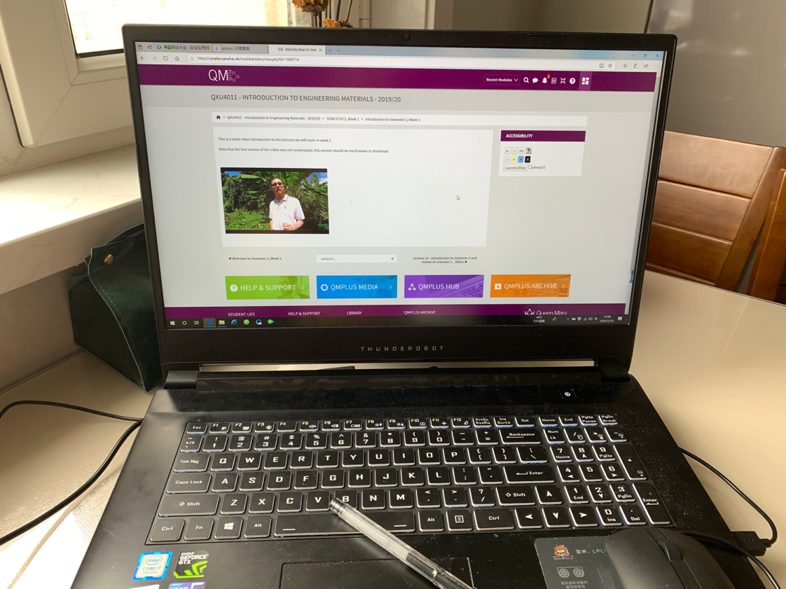 今天是新学期第一天开学,也是我在大学阶段第一次体验在线上课。我的第一节课是英国Andy Bushby教授的《材料学实验》,Bushby教授在线向我们发布任务,我们在阅读和思考的同时,可以随时在QM PLUS的livechat板块向老师提问,而且全年级的同学都可以参与讨论,气氛非常热烈。