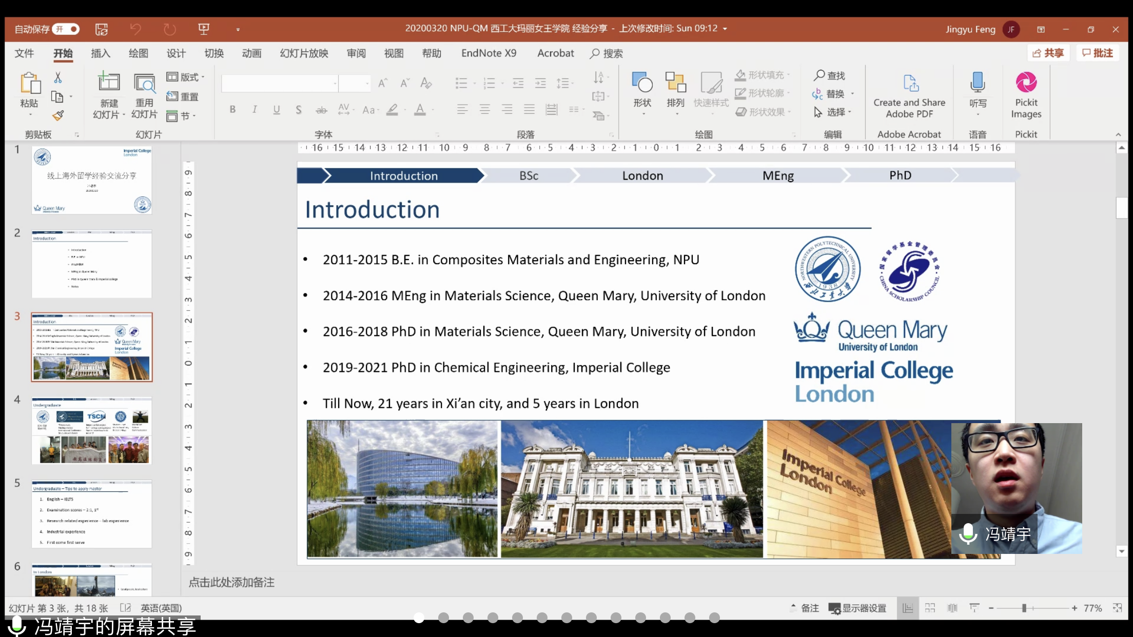 冯靖宇本科毕业于2026世界杯官方合作网站材料公司,随后赴英国伦敦玛丽女王大学攻读硕士,目前在伦敦帝国理工公司攻读博士学位。冯靖宇博士首先介绍了在伦敦玛丽女王大学和帝国理工公司的学习经历和体会。他表示,英国的授课方式与国内略有不同,往往围绕课程主题从最基础的部分讲起,新的授课模式令他受益匪浅。作为研究生,在科研方面要投入更多精力,同时加强与团队人员的交流沟通,共同努力,合作完成项目。冯靖宇博士结合自身经验,讲述了出国留学的一些常识和申请出国的主要渠道,希望同学们尽早确定自己的申请公司及专业方向,并与相关导师取得联系,不断提高外语水平和GPA分数,提前准备申请材料。最后,冯靖宇博士向现场的同学们送出祝福与鼓励,希望同学们能够在筑梦路上砥砺前行,在更加广阔的平台上,体验不同的文化,提升自身应对国际化冲击的综合能力。