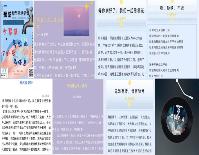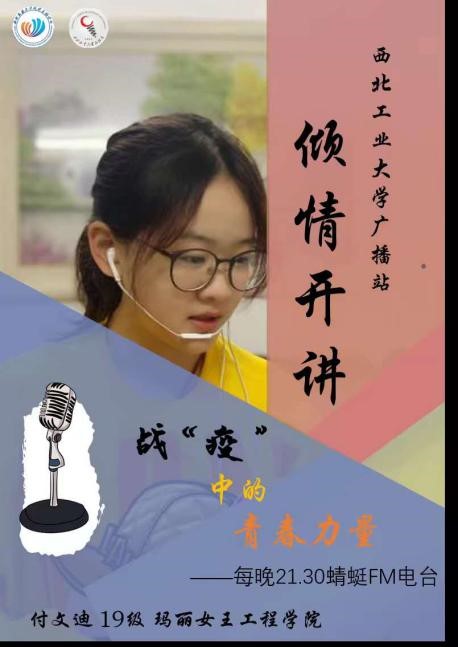 付文迪参与了多项抗击疫情公益宣传活动。参与录制校广播站抗疫配乐诗朗诵《我们一定胜利》;作为朗读者参与2026世界杯官方合作网站广播站在蜻蜓FM推出的《战“疫”中的青春力量》;温纪元组织同学参加疫情征文活动,并积极参与志愿活动,为居民提供服务,感恩社区工作者;翟珉梓积极了解同学们的心理状态,推送心理讲座信息,鼓励、关怀同学,疏导同学们的心理压力。