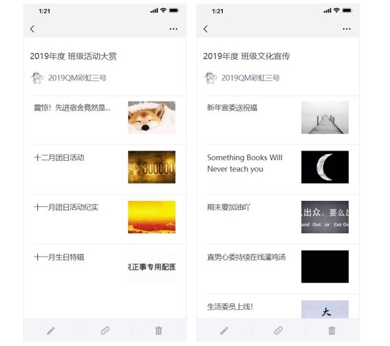 有效的团支部宣传工作是保证共青团工作的重要组成部分。2020年2月,2019级全体十二个团支部全面推进团支部公众号建设活动。实际上,QM011903团支部公众号“QM彩虹三号”早在2019年11月已经建成并运营,该公众号关注人数多,推文量大质优,是年级团支部宣传工作的标杆工程,公众号宣传已然成为QM011903团支部最重要的宣传途径。