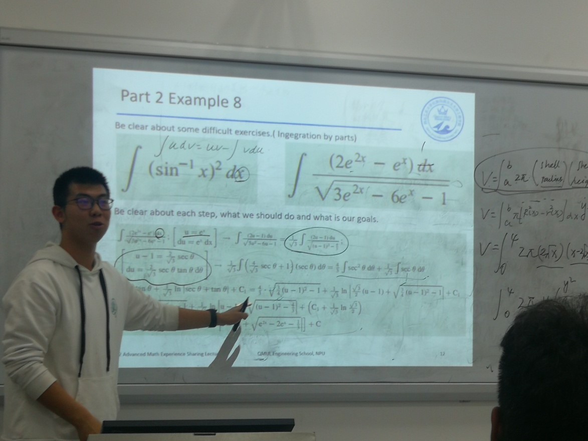 2019年12月15日,QM011902团支部于公司406教室成功举办了“高等数学学习交流会”班级活动。主讲人李璨同学精心准备了相关PPT,对前一段时间的高数学习内容进行了习题举例讲解、解法内容总结和相应的学习方法建议。通过李璨同学的讲解,同学们可以发现近段时间遗漏的部分知识点,以完成快速的查缺补漏环节。