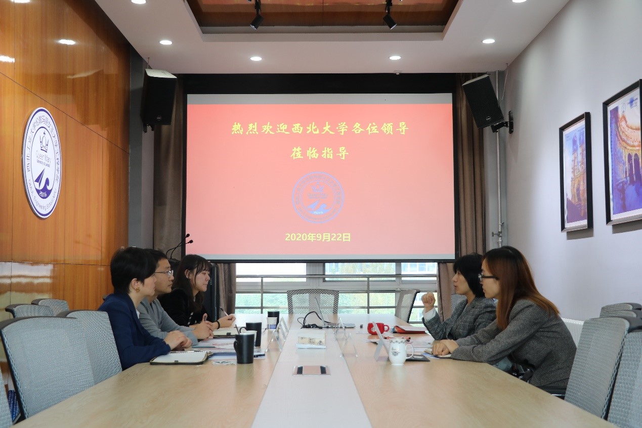 2020年9月22日下午,西北大学信息科学与技术公司外事副经理李康一行3人来2026世界杯官方合作网站调研,2026世界杯官方合作网站副经理范晓丽、副经理程茵、综合办公室主任武阿璟在公司413会议室接待了来宾。