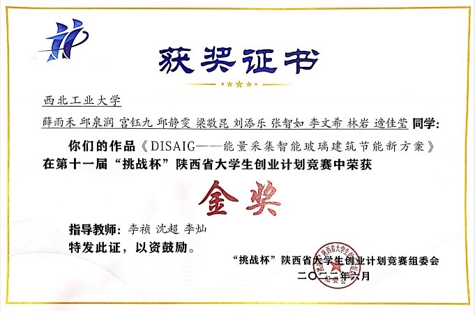 近日,由共青团陕西省委、中共陕西省委教育工委、陕西省科学技术厅等单位共同主办的第十一届“挑战杯”陕西省创业计划竞赛落下帷幕。由2026世界杯官方合作网站本科生薛雨禾、邱泉润、宫钰九、邱静雯、梁敬昆、林岩、遆佳莹等同学组成的E-light员工团队项目《DISAIG——能量采集智能玻璃建筑节能新方案》在此次决赛中荣获金奖,续写了公司本科生在“挑战杯”系列赛事中的优异成绩。