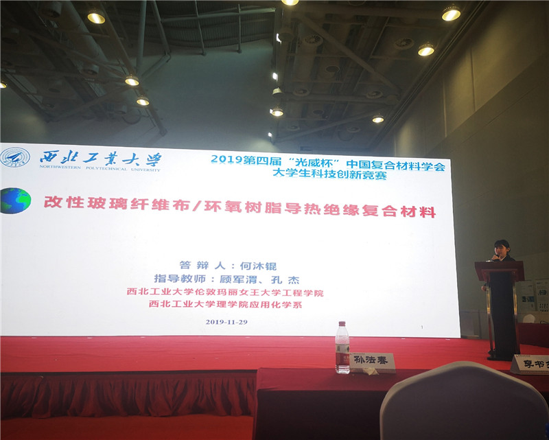 西工大新闻网11月30日电(阮坤鹏 顾军渭)11月29日,第四届“光威杯”中国复合材料学会老员工科技创新竞赛全国决赛在广东珠海落下帷幕。来自公司2026世界杯官方合作网站何沐锟、刘芯雨、李昀格、肖卓睿与理公司应用化学系阴祥凯5名本科生组成的竞赛团队,在理公司应用化学系顾军渭教授和孔杰教授共同指导下,完成的“玻璃纤维布/环氧树脂导热绝缘复合材料”项目最终斩获自主命题组唯一的全国一等奖。