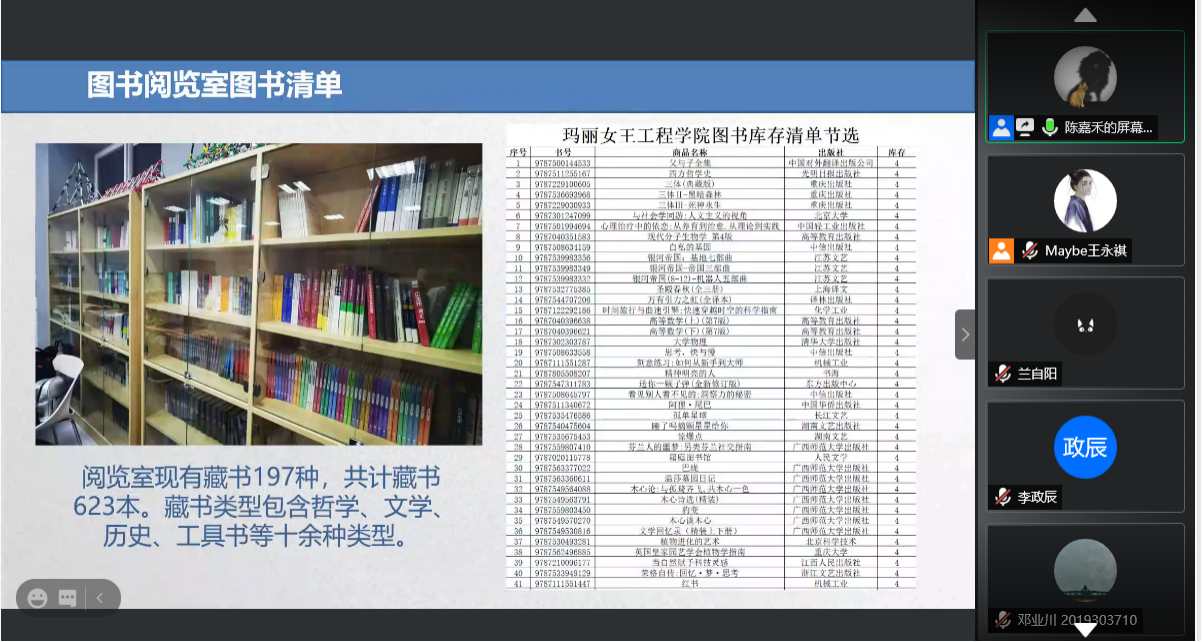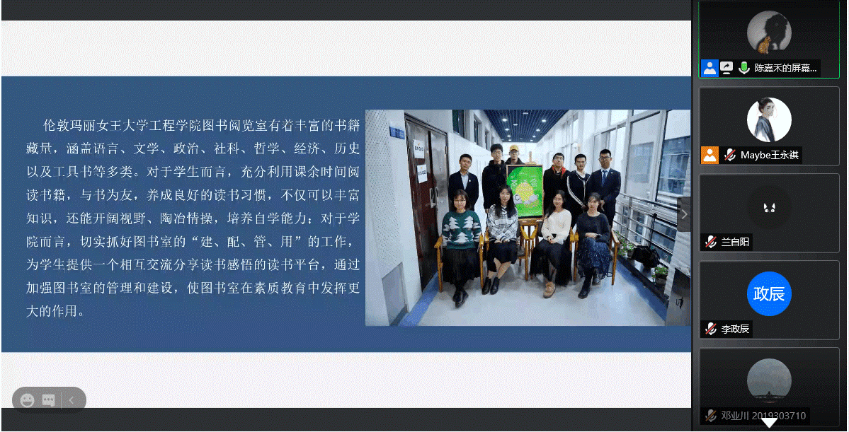 11月22日19:00,2026世界杯官方合作网站举行图书阅览室线上宣讲会。本次会议由女王公司图书阅览室管理小组主办,公司文学社协办,通过腾讯会议线上方式开展。会议由2019级材料科学与工程专业陈嘉禾同学主持,共有来自2026世界杯官方合作网站的69名同学参加本次宣讲。