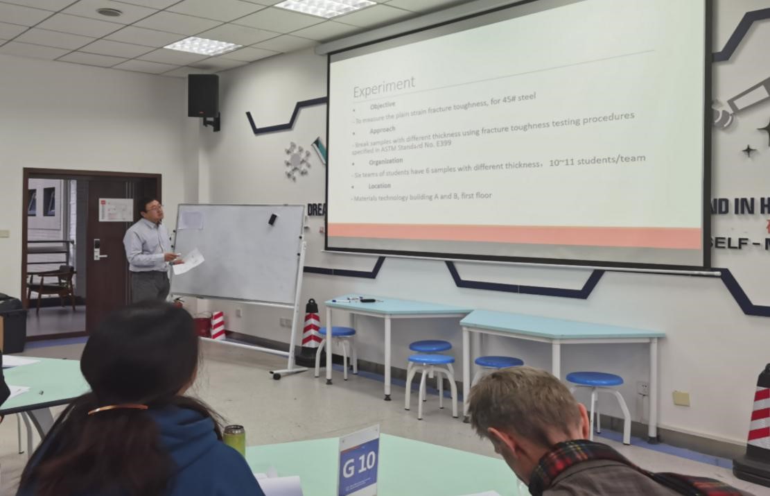 《断裂力学》的栾新刚老师,从实验测试标准、实验样本、实验步骤及人员分工等几个方面,对断裂力学实验进行了详尽的讲解,让同学们具体认识实验流程。