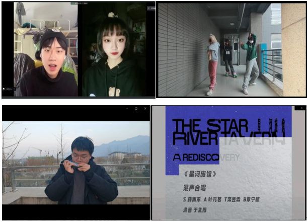 第四部分是晚会节目汇演。演职人员利用一天的时间紧张排练,录制,呈现出了精彩纷呈的节目效果。同学们在这里尽情展示自己的才华,魔术、相声、声乐、舞蹈、口琴独奏、吉他弹唱、独唱、合唱等节目应有尽有,令观众大饱眼福、赞不绝口。轻松欢快的氛围使大家连日来的疲惫一扫而光,宿舍封闭带来的紧张和压抑情绪得到一定程度的舒缓。