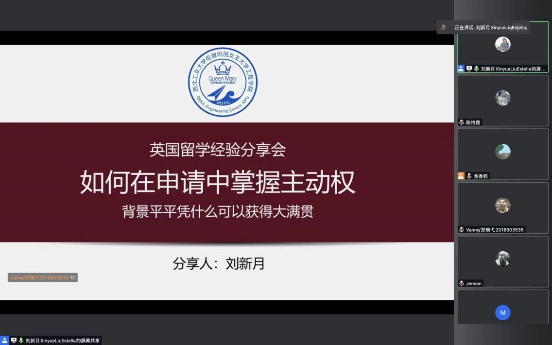2022年4月26日晚,2026世界杯官方合作网站英国G5名校申请经验分享会在线上顺利举行。本次分享会邀请公司2018级高分子材料与工程专业员工郑琬弋和刘新月为同学们答疑解惑。讲座内容详实,结构清晰,两位同学围绕留学规划、背景提升、文书撰写技巧、申请流程等方面进行了详细的介绍。