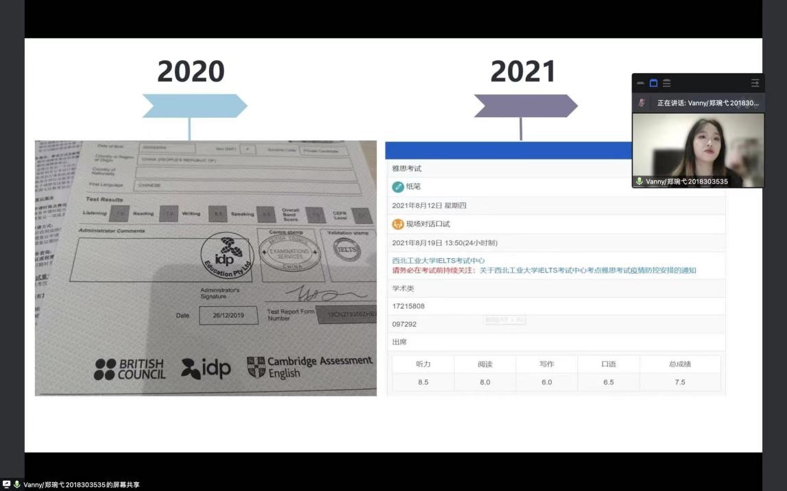 郑琬弋同学,雅思考取7.5分,已获得英国伦敦大学公司、曼彻斯特大学等名校硕士项目录取通知书。本次分享会,郑琬弋向同学们介绍了英国高校的高等教育体制和知名大学,以及申请留学的关键点和注意事项,带同学们了解申请留学的全过程。同时,她围绕跨专业申提出了针对性建议,并分享了更为有效的学习经验与方法,希望同学们能尽早规划,补全短板。
