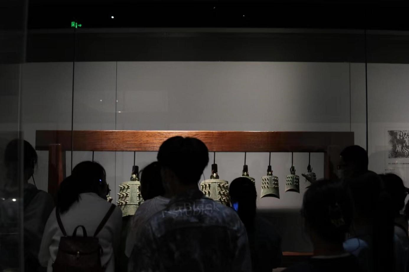 第一展厅首先映入同学们眼帘的是陕西地形地貌图。西安处于秦岭以北,东南沿海湿润气候向西北内陆气候的过渡带上,具有十分宜居的气候条件。这片土地上河流众多,水利资源十分丰富,优越的地理环境,铸就了灿烂的华夏文明。随后,同学们了解了直立人的起源——蓝田人、氏族生活、古国肇始、周人起源、秦国的诞生,依次观摩了老官台文化、仰韶时代、龙山时代、石峁文化、黑皮陶文化时期的展品。漫长的岁月留下了无数瑰丽精美的文物珍宝:仰韶时代的人面鱼纹盆、周人的甲骨文、奏响宫商角徵羽五调的传统乐器、多友鼎、秦代的虎符、因为氧化脱色的“千人千面”的兵马俑、铜车马等。同学们通过对第一展厅的参观学习,追寻到远古时期人们的生活日常,感受到古人对于文字、货币使用的伟大智慧。