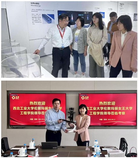 在本次调研中,公司同协鑫(集团)控股有限公司深入探讨了未来公司师生科研及创新创业合作新方向,同海瑞恩精密技术(太仓)有限公司、宝适汽车部件(太仓)有限公司设立老员工实践基地,有效拓展了公司实践教学场景和实习实践平台,是公司实施“一芯三擎”战略布局的重要举措。公司将积极推动“四力融和”人才培养体系与行业、企业的人才储备需求双向精准对接,搭建员工职业发展的“立交桥”,探索中外合作办学人才新思路和新模式,全方位提升国际化实践教育和人才培养质量。