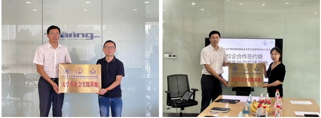 王海涛、代富平和程茵一行7人前往两家德国企业调研交流,海瑞恩精密技术(太仓)有限公司生产总监方超和宝适汽车部件(太仓)有限公司亚太区运营副总裁汪根芝等相关工作人员接待并陪同参观。调研期间,代富平介绍了公司运行、人才培养和员工发展等情况,方超、汪根芝介绍了企业发展现状和前景。交流环节,双方讨论了本科生实践实训基地搭建,企业表示对优秀人才短期及长期实习有持续需求,公司将在以后的人才培养中,将充分考虑企业需求,落实实践育人、协同育人,充分发挥校企优势、资源,为社会和企业培养更多高质量人才。随后,双方代表人员共同为老员工社会实践基地揭牌。