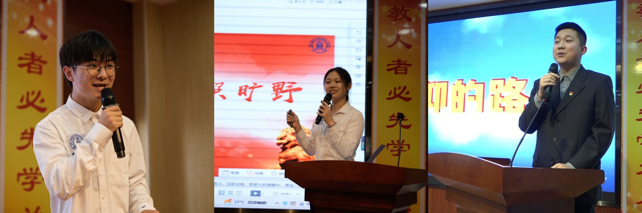 西工大青年宣讲团的甘肃同学从百年辉煌党史中,回顾了工大学子的家国情怀。陈心妮同学以萤火虫为引,“萤萤之火,可照旷野”,讲述了青年汇聚在一起的蓬勃力量。王天毅同学讲述了中国青年成长的三部曲,鼓励青年人走在信仰的路上,凯歌前行。