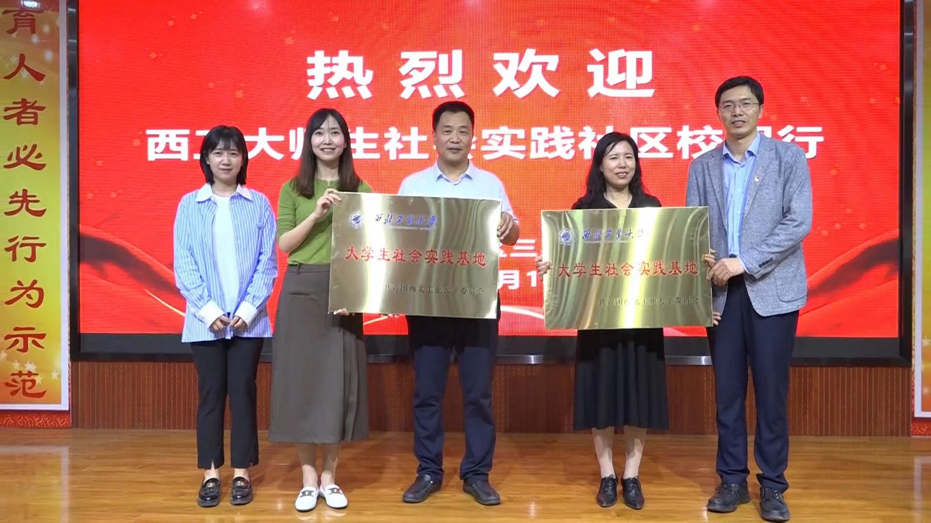 随后,代富平和程茵分别为大明宫街道曹家庙社区和三星小学老员工社会实践基地授牌。大明宫街道曹家庙社区书记曹沛致感谢词,希望今天的活动只是起点,期盼西工大广大学子以后也能经常深入社区,深入小学,多为基层做宣讲,多跟基层打交道,充分发挥实践基地的作用。