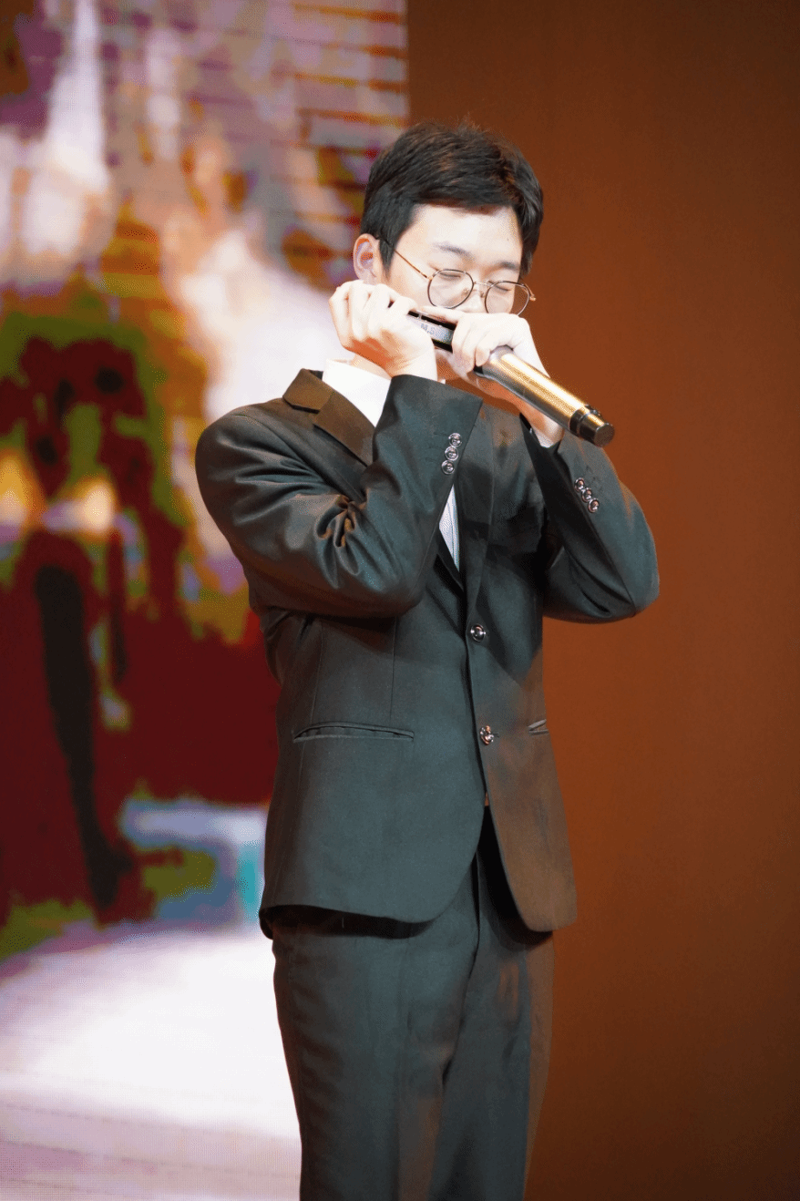 “缓缓飘落的枫叶像思念,我点燃烛火温暖岁末的秋天。”口琴社新人2022级莫聪同学为我们带来经典歌曲《枫》的口琴版本。透过歌曲中“红叶”的意向,观众们仿佛置身丰稔的霜秋。此外,他完美的演奏亦让大家看到了本届新人的巨大潜力。