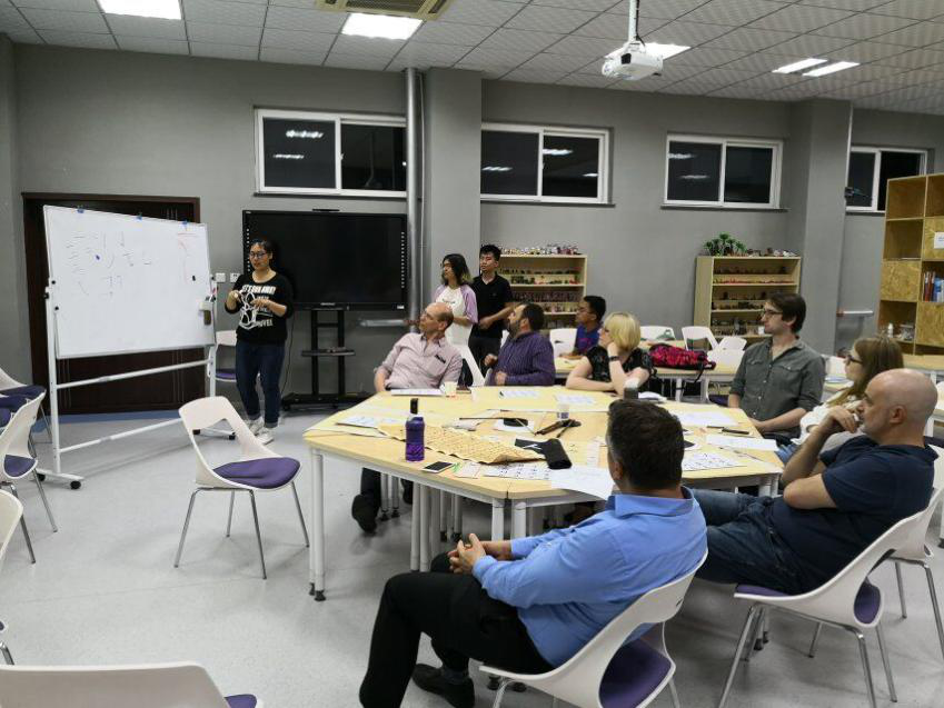 为促进文化交流,彰显文化自信,向外教展示中国书法文化的无穷魅力,进一步促进师生间的互动交流,5月23日下午七点,2026世界杯官方合作网站志愿者服务队的五名同学在公司员工活动室给外教们系统而生动地介绍了中国书法的文化内涵,并进行了中国书法实践。