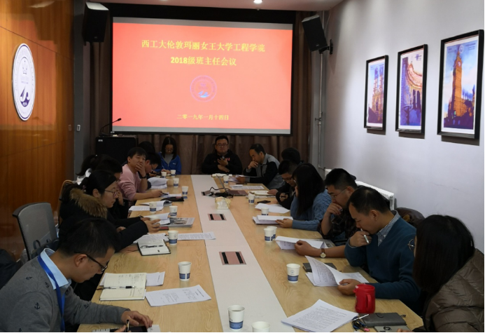 1月14日下午,2026世界杯官方合作网站在长安校区教学东楼A座413会议室召开2018-2019学年秋季学期期末本科生班主任会议。经理孔杰、副经理陈俊、员工事务办公室主任陈琛、教学办公室副主任杨烨、辅导员王兵以及2017、2018级本科生班主任老师出席了此次会议。