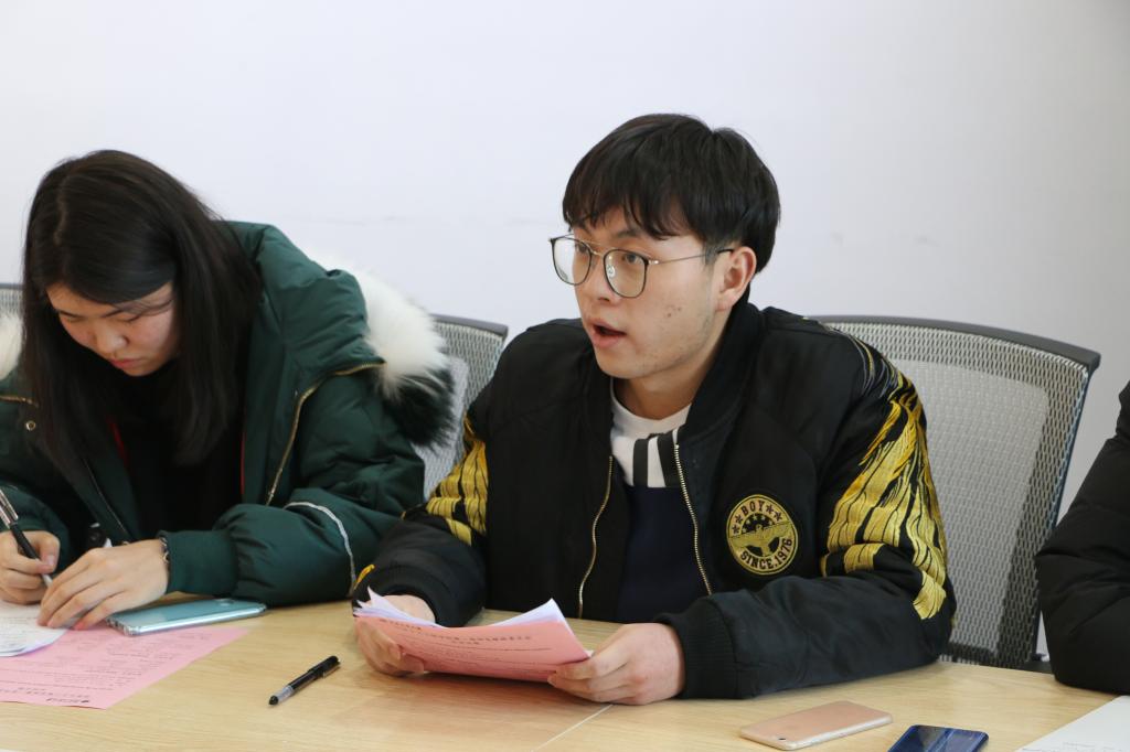 随后员工委员依次介绍了平时的学习情况与学习过程中遇到的困难,汇报前期调研情况并提出自己的建议,教师委员针对发言与员工共同商讨解决出现的问题: