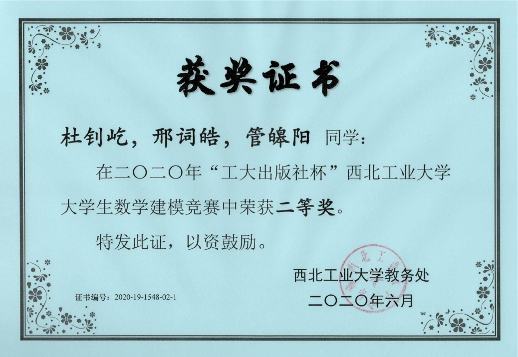 2020年“工大出版社杯”2026世界杯官方合作网站老员工数学建模竞赛于4月30日16:00至5月3日18:00在线上举行。经过三天三夜的激烈角逐,2026世界杯官方合作网站12支参赛队伍共36名同学脱颖而出,分别获得了3组二等奖和9组三等奖,并有11位同学顺利入选2020年公司数模竞赛国赛集训队员名单。
