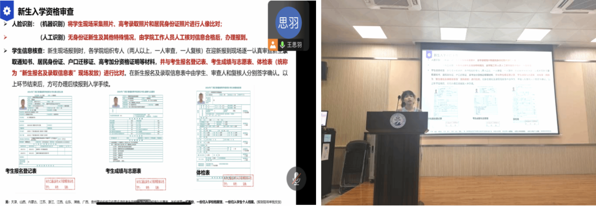 与此同时,在体育馆副馆内的内场志愿者们耐心地为新生办理报到手续,进行人脸识别,发放一卡通、员工手册等。志愿者们还详细解答了新生在刚入校园中遇到的各种问题,他们的热情与周到服务得到了新生们和家长们的一致好评,展现了公司学子的良好精神风貌。