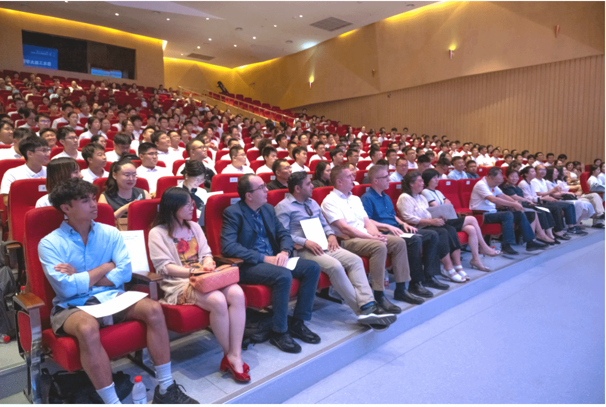 见面会结束后,全体新生和中英双方负责人及教师代表在南山艺堂外合影留念。