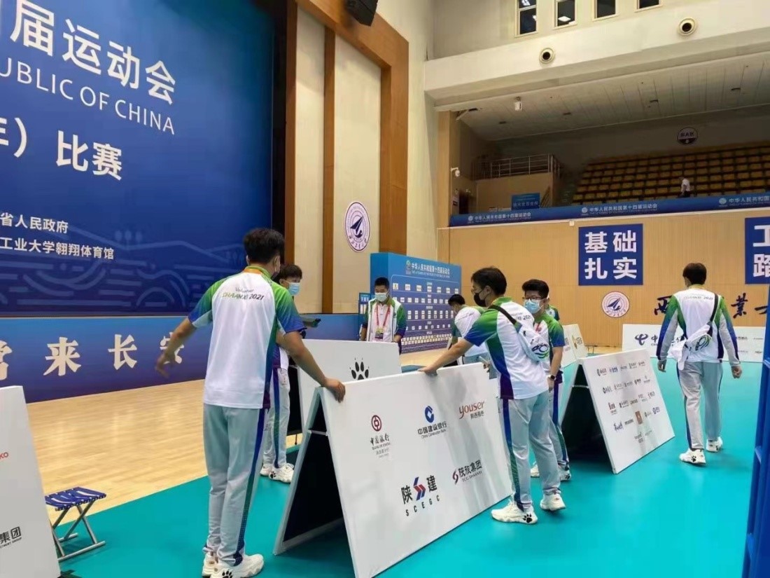 怀揣着热情与憧憬,同学们投身到志愿服务工作中去。赛场工作人员向志愿者们详细讲解相关注意事项,志愿者们有条不紊地布置场地,不辞辛劳的行为准则和一丝不苟的工作态度展现出西工大学子的优良作风。大家将共同努力,保障运动员们在良好的比赛环境发挥出最佳状态,拼出实力,竞出精彩,也给观众们带来激情澎湃的视觉盛宴。