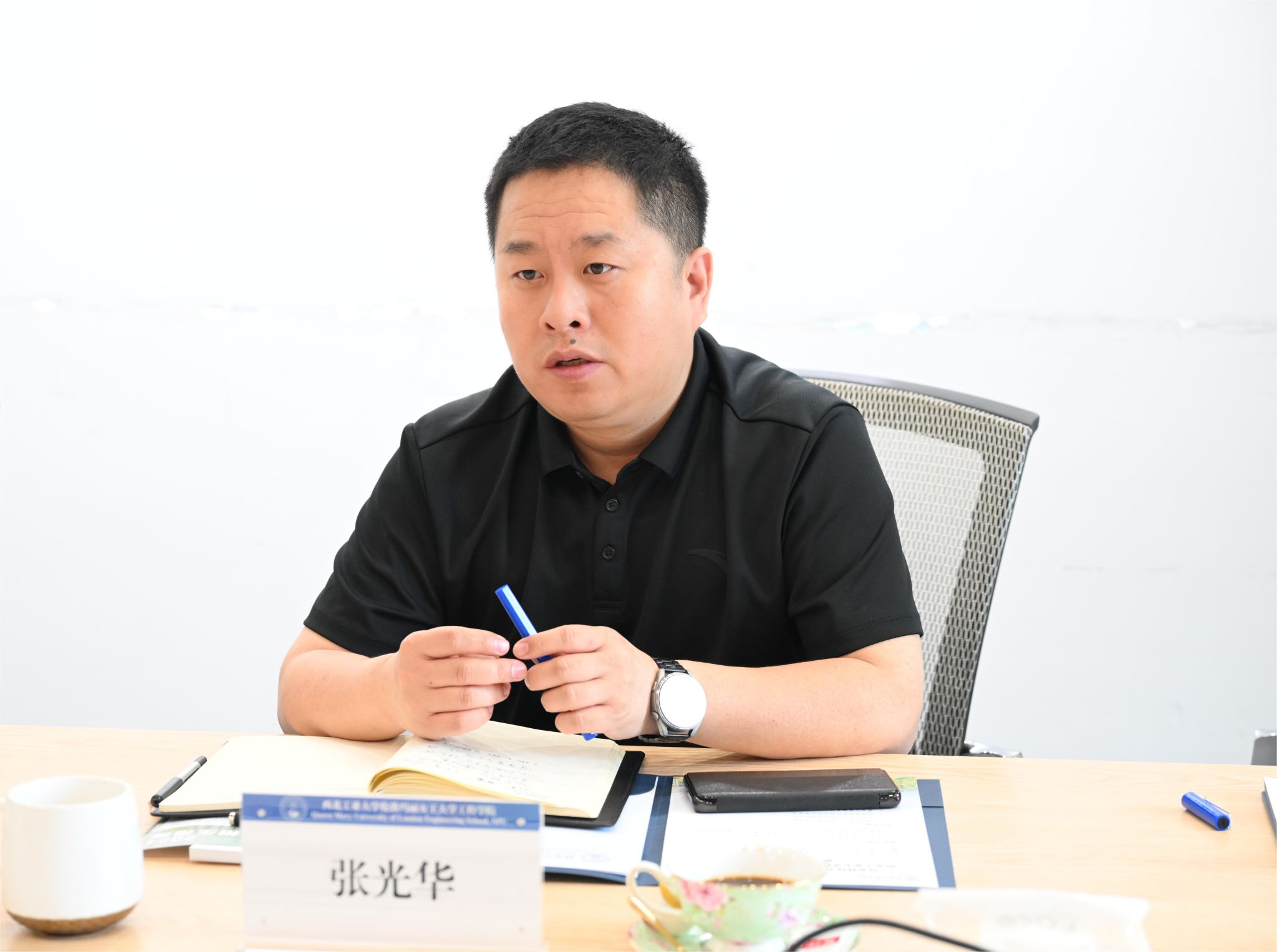 调研座谈会在413会议室召开,代富平首先代表公司对调研队到访表示欢迎,并详细介绍了公司发展历程、人才培养举措及近年办学成效。张光华对公司的热情接待表示感谢,并对河北科技大学澳联大信息工程公司的基本情况进行简要介绍。随后,双方围绕中外合作办学党建工作、招生工作、团队队伍建设与管理、员工毕业发展及海外实习实践等进行交流研讨。