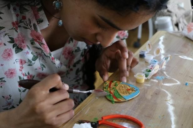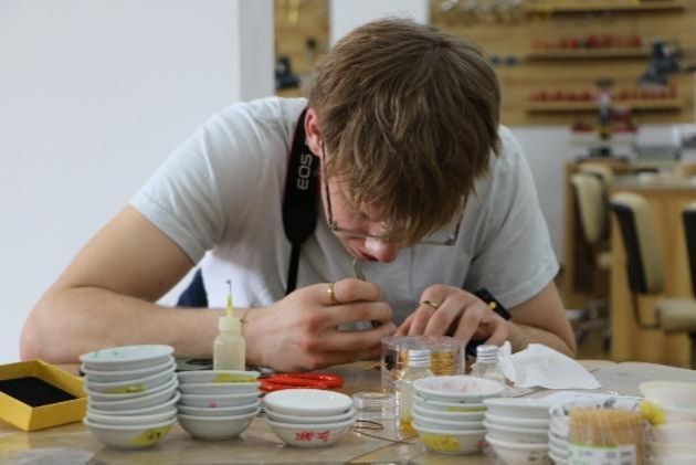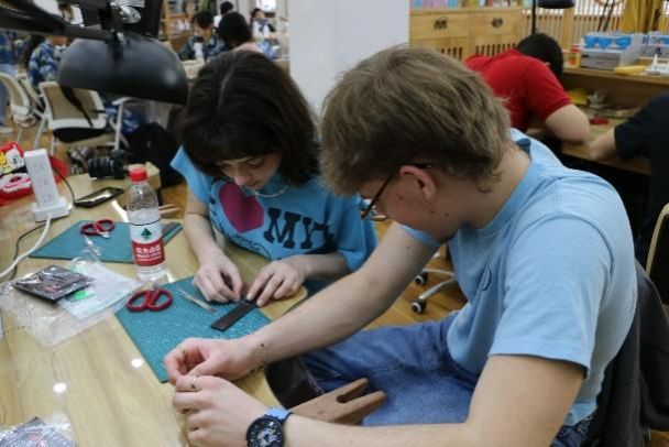 在接下来的交流中,公司联合工程实践训练中心为员工大使们安排了一系列丰富多彩的文化体验活动。员工大使们聚精会神地聆听着老师们的讲解,仔细观察示范操作,积极参与实践环节,亲身体验了掐丝珐琅、木镶银及激光剪纸等传统工艺。虽然初次尝试略显生疏,但他们的作品却充满了创意与想象力,令人眼前一亮,员工大使们也深刻感受到中国非遗手工艺品的制作之美。