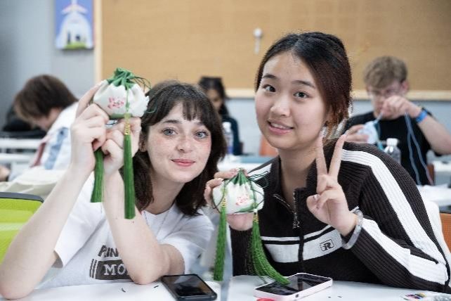 “文化共融情似海,友谊长存心相连。” 除传统工艺体验外,志愿者们还自发组织了香囊及团扇制作活动。员工大使们在志愿者的悉心指导下,用丝绸、香料等材料制作出了精美的香囊和团扇。这些小巧玲珑的手工艺品不仅展示了中国传统文化的独特魅力,也让员工大使在动手制作的过程中深刻感受到了中国传统文化的韵味与内涵。