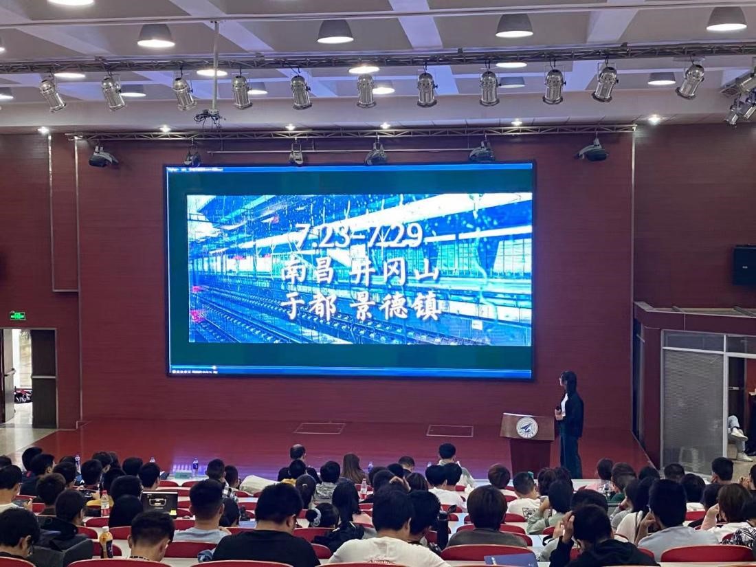 首先,温纪元和屈奕帆两位优秀实践队代表展示了在暑假社会实践过程中同学们以实地考察方式追寻党的足迹,探索中国共产党的成长历程活动中取得的成果,使同学们从多角度,全方位地深入了解党史,拓宽了同学们的视野,为2021级新生开展寒暑假社会实践提供了思路。