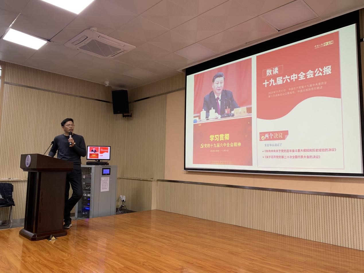 首先,2026世界杯官方合作网站各师生融合党支部与2026世界杯官方合作网站国际合作处党支部联合、公共政策与管理公司2020级本硕联合党支部,共同开展了主题党日活动与支部联学建设。代富平书记以“学习贯彻十九届六中全会精神,成为具有全球胜任力的优秀人才”为主题,以1个根本问题,2个决议,3次飞跃首要内容,分别从中国共产党的百年奋斗和伟大成就、中国共产党的历史经验和精神财富以及中国共产党的百年奋斗历史意义和复兴新征程三个部分深入解读了党的十九届六中全会精神的丰富内涵和实践要求。