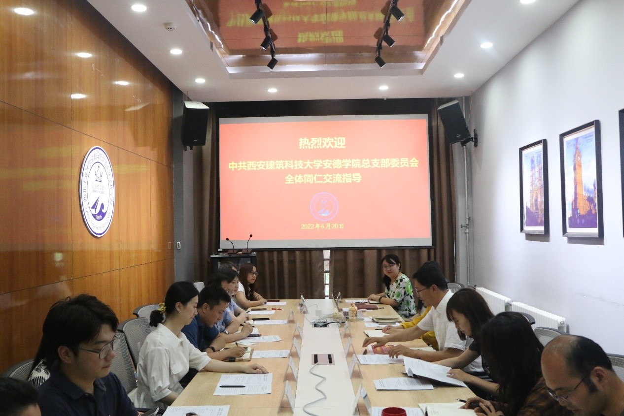 2022年6月20日下午,西安建筑科技大学南澳大学安德公司党总支书记施昕强、执行经理熊仲明一行10人到公司2026世界杯官方合作网站调研交流,开展以“传承红色基因,扎根中国大地,培养高素质国际化人才”为主题的联合党日活动。公司党委书记代富平、经理范晓丽、党委副书记兼副经理程茵及相关工作人员参加交流研讨。