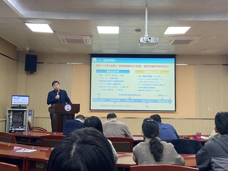 On the afternoon of December 6, 2021, Kong Jie, Dean of QMES, gave a training on QMES’ educational concepts and working methods for new employees and student representatives.Dai Fuping, Party Secretary and Vice Dean of QMES, Cheng Yin, Deputy Party Secretary and Vice Dean of QMES, attended this training as well.