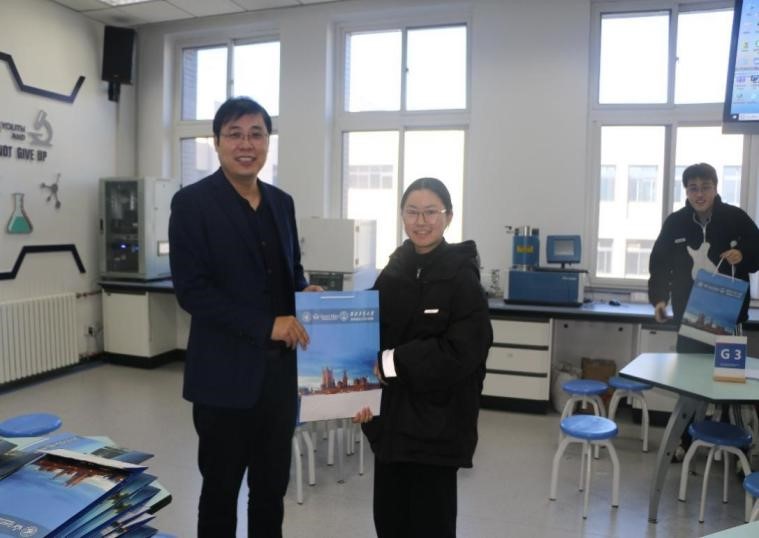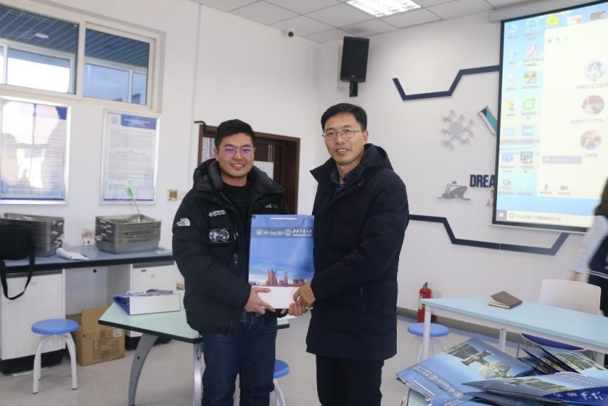 After the meeting, Dean Kong Jie and Secretary Dai Fuping distributed the gift packages for the postgraduate entrance examination to the students. They wished each of them could succeed in this exam and realize their dreams. The students were very inspired by this meeting and said that they would try their best to have a good result.
