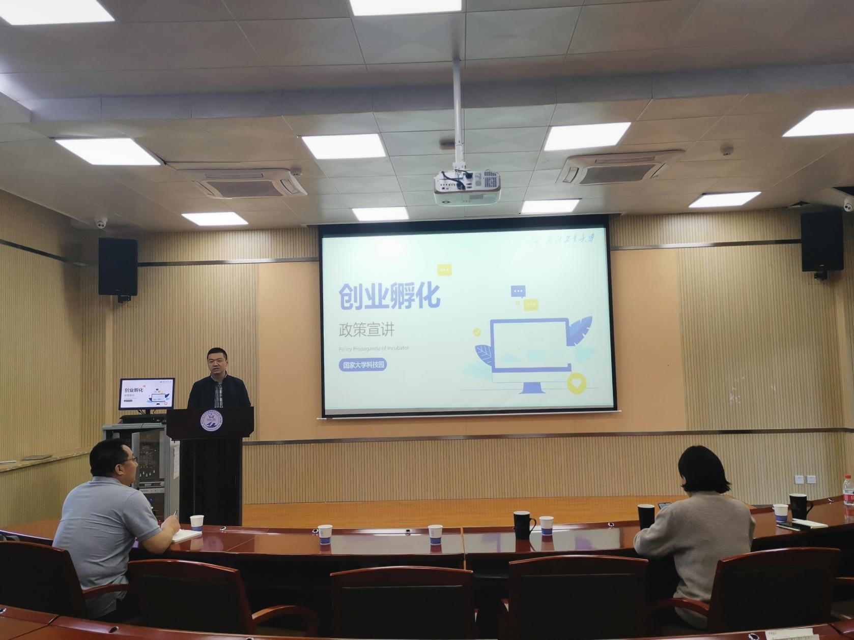 Subsequently, Gu Zhenfang, Deputy Director ofthe National University Science Park and Head of the Incubator, explained the incubation policy of National University Science Park, and thoroughly introduced the innovation and entrepreneurship policy, professional team, sound service system, maker space, incubators and projects selection process of the National University Science Park. He also explained the role of the National University Science Park through successful entrepreneurial cases of college students.
