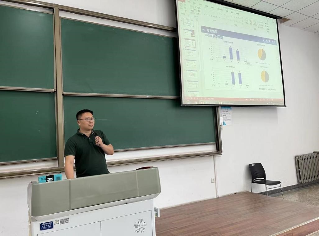 In orderto strengthen the disciplineawarenessof 2021 cohort undergraduates, to improvetheirlearning initiative and to ensurethe smooth progress ofthe final examination,QMES organized the final examination mobilization meeting at noonofJune 8, 2022. The meeting was hosted by Zhuang Qiang, 2021 cohort counselor. Fan Xiaoli, Dean of QMES, Cheng Yin, Vice Dean of QMES, Yang Ye, Director of the Teaching Affairs Office, Teaching Secretary Liu Kejia and all the students and head teachers of 2021 cohort undergraduates attended the meeting.