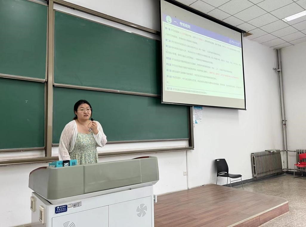 After that, Liu kejia emphasized the examination regulations and the matters needing attention. She further introduced the corresponding treatment of discipline violations, clarified the responsibility of invigilators, and hoped that students can strictly abide by examination rules.