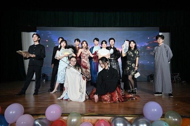 The drag show “Huo Yuanjia” from students, including Yuan Yixuan,etc brought the party to a climax. The performers wore costumes of different eras and painted iconic makeup that matched the characteristics of the times, which displays rich connotations of Chinese style and shows the elegant demeanour of students of QMES.