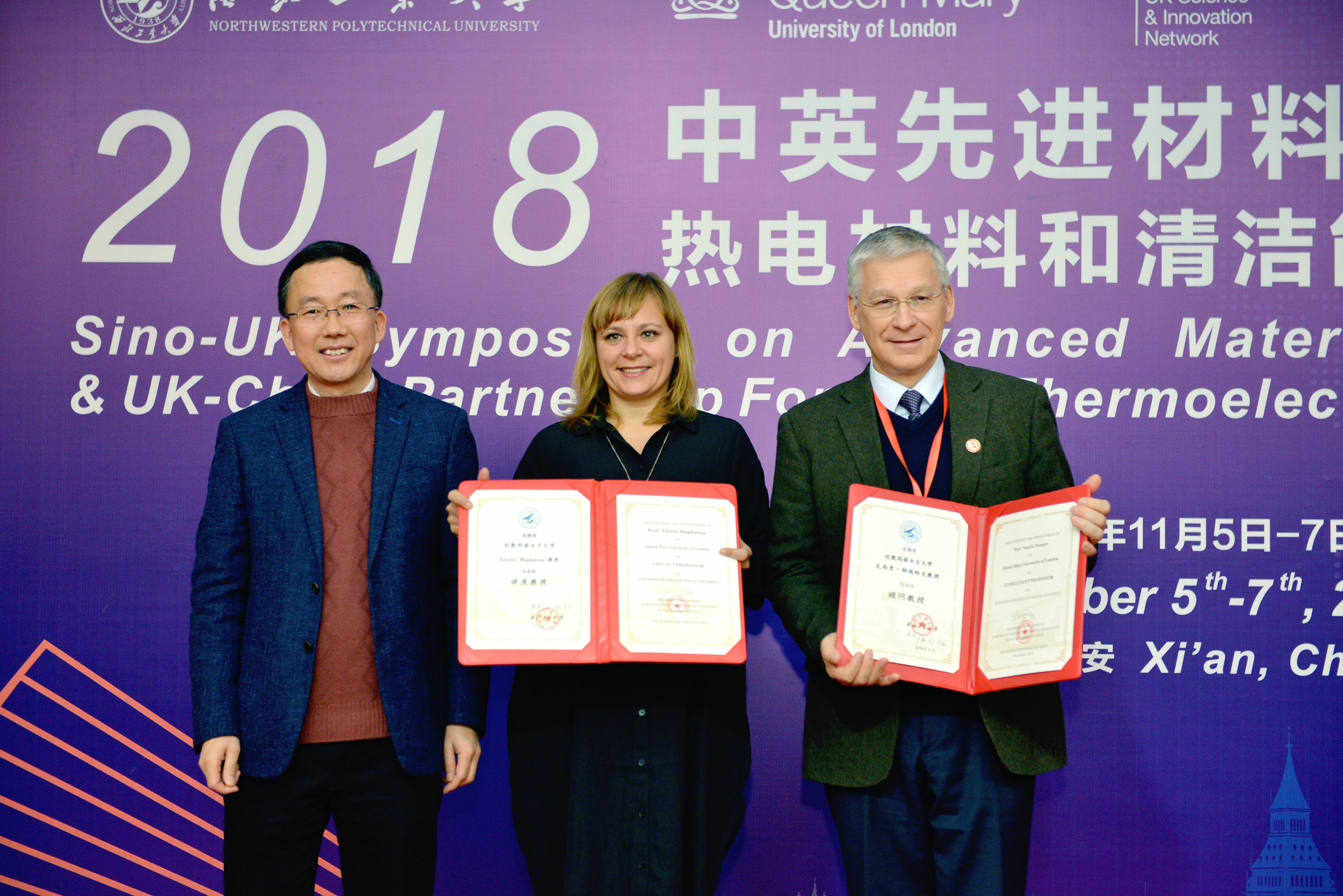 The 2018 Sino-UK Symposium on Advanced Materials and Structures & UK-China Partnership Forum in Thermoelectrics for Clean Energy which was jointly hosted by British Embassy, Beijing, Northwestern Polytechnical University (NPU), Queen Mary University of London (QMUL) andXi’an National Civil Aerospace Industrial Base successfully took place in International Conference Center of NPU on November 5, 2018. More than 50 internationally renowned experts and scholars have delivered academic reports and held in-depth discussions on the topics of thermoelectric materials and clean energy.