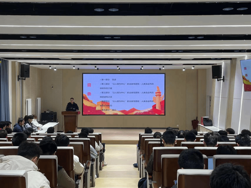Cheng Yin, Deputy Secretary of the QMES Party Committee, gave a lecture entitled “Chinese Modernization Promotes the Great Rejuvenation of the Chinese Nation”. She explained the requirements for promoting Chinese modernization from five aspects: holding high the great banner of socialism with Chinese characteristics, continuing to grasp the basic features of Chinese modernization, sticking to the central task of the Party in the new era and on the new journey, and upholding the overall leadership of the Party and the great self-revolution. She encouraged the students to take responsibility and actively participate in the construction of Chinese modernization.