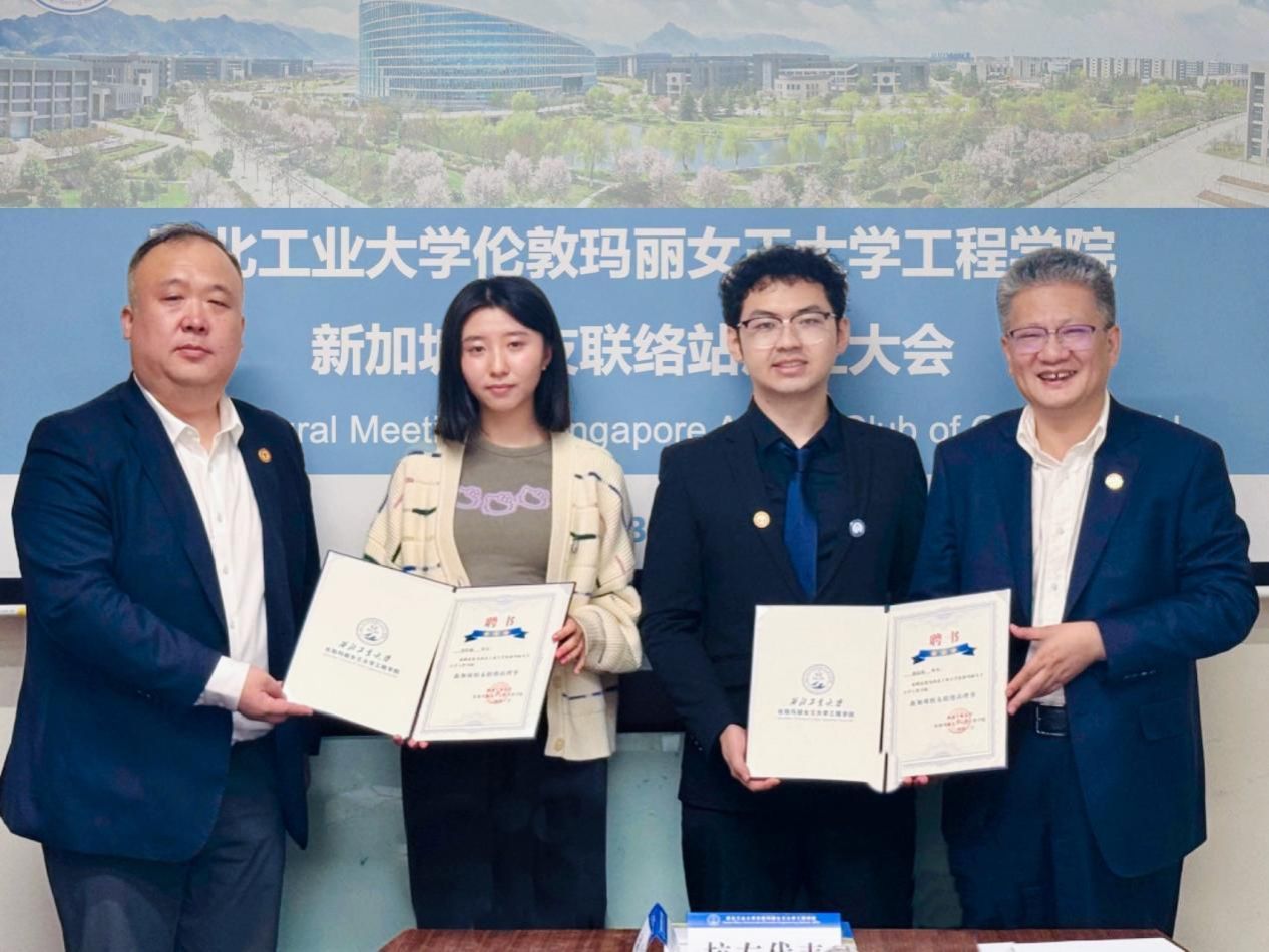 接下来,范晓丽宣布新加坡员工联络站正式成立,参会教师代表和员工选举了联络站秘书长及理事。经前期意见征集和现场投票表决,2022届员工罗张良当选为联络站秘书长,2022届员工赵晨焱、2023届员工屈奕帆、和舒越当选为联络站理事。侯成义为罗张良颁发秘书长聘书,符新伟、郑曦、范晓丽分别为3位理事颁发聘书,杨爱国代表新加坡员工分会授予联络站成立纪念牌。会议在友好温馨的气氛中进行。