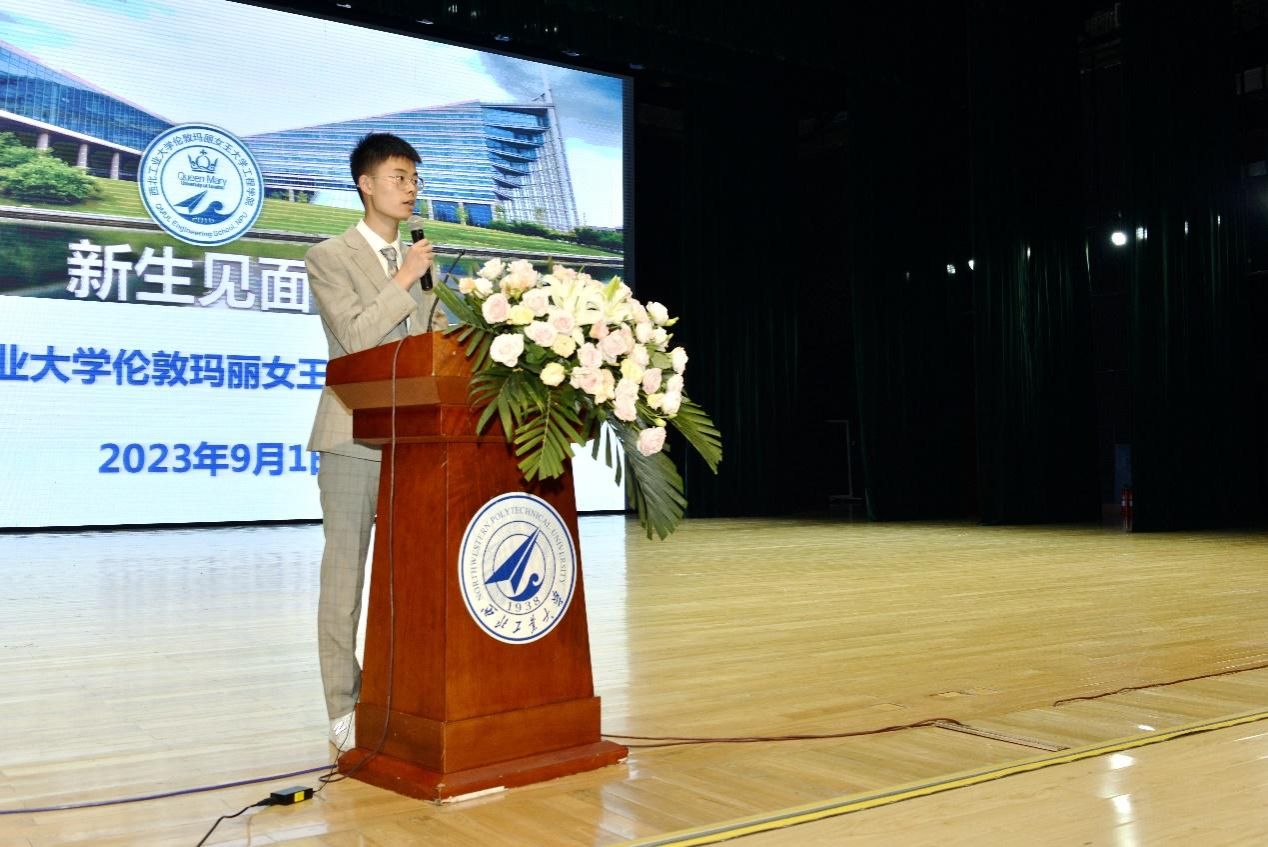 2022级王晨宇同学和2023级黄易可同学作为员工代表发言。王晨宇分享了在工大校园学习生活的心得体会,鼓励新生们要拥有迎难而上的勇气与决心。黄易可作为新生代表表达了对老员工活的期许,并表示作为新时代青年,应树立远大的理想和抱负,时刻保持探寻真知的理想与追求,共同努力,携手并进。