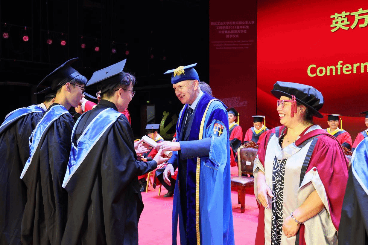 Honorary certificates were presented during the ceremony, including the NPU Outstanding Graduate Award, the QMUL Principal's Prize, the Best Dissertation Award, and the Most Improved Student Award.