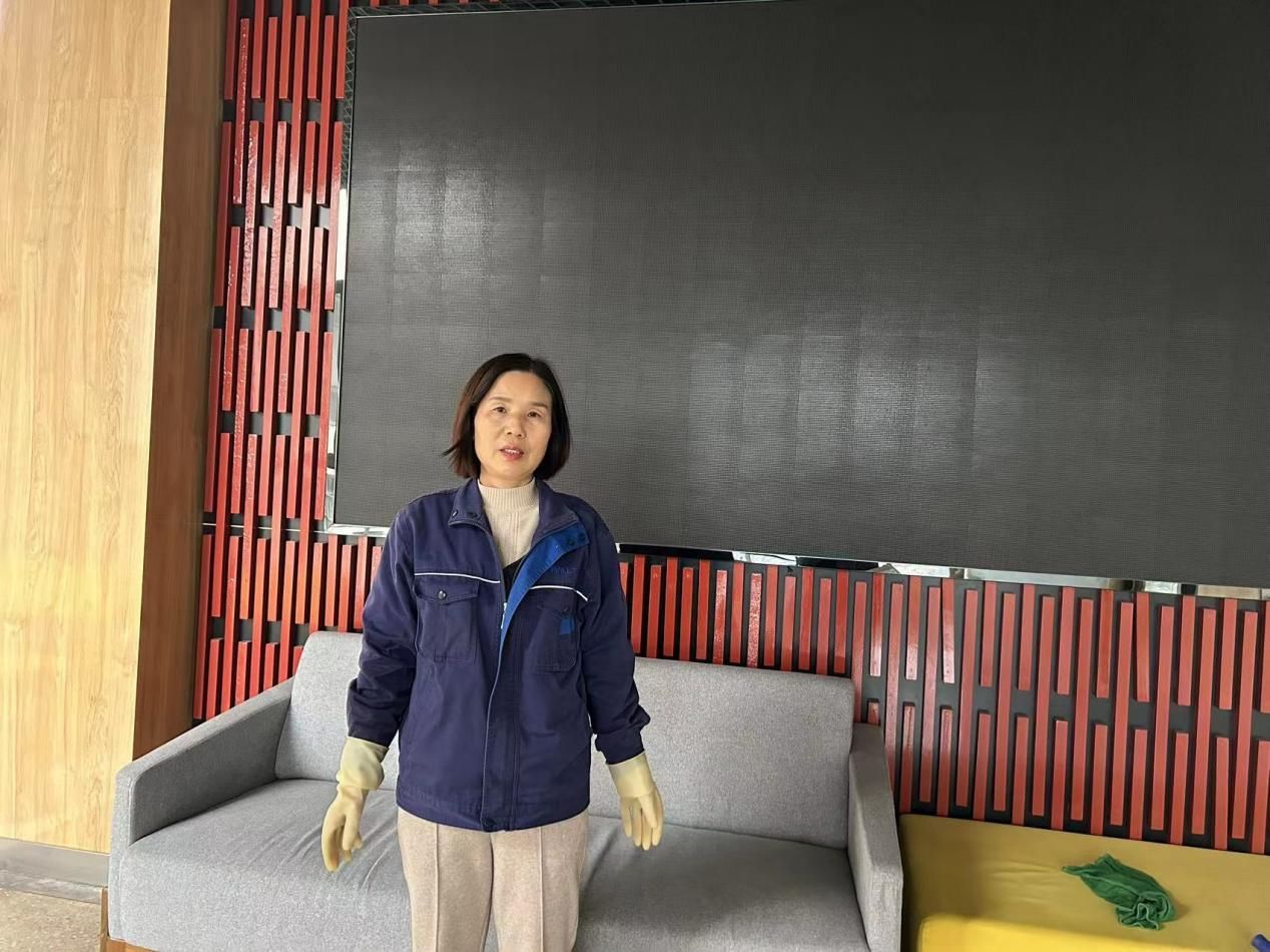 她淡泊名利,甘于奉献,日复一日、年复一年的第一个早早来到公司开始一天的工作,细致而耐心的擦洗每一个角落。常听她说“既然干了这活儿,就把它干好”、“放心交给我…….”从这些亲切而朴实的场景中,透露出她对岗位的忠诚、热爱和坚守。
