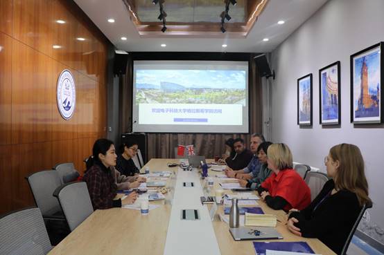 On December 13, 2019, teachers from the Language Support Center of Glasgow College of University of Electronic Science and Technology of China visited QMES. Fan Xiaoli, Vice Dean of QMES met with the guests in Meeting Room 413. Four foreign teachers of QMES, Faith Nightingale、Agne Kocnevaite、Alan Allman、Luqman Ahmed and Education Manager Qi Yue attended the meeting.