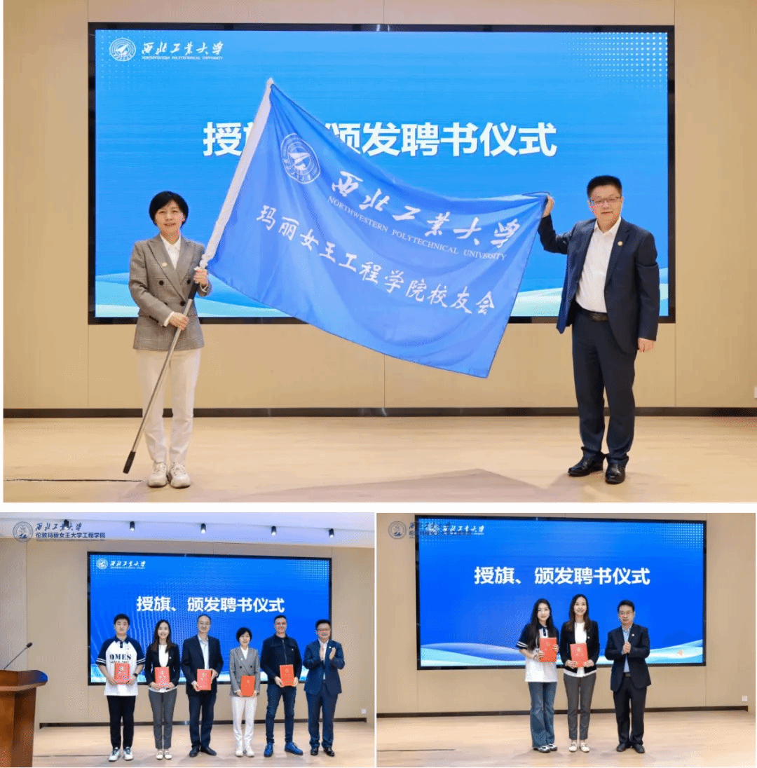 Wang Yubo, Assistant to the President of NPU, presented the flag to the QMES Alumni Association, which was received by Fan Xiaoli, the President of the QMES Alumni Association and Dean of QMES. Wang Yubo, along with Yang Ming, the Director of the External Liaison Office and Secretary-General of the NPU Alumni Association, respectively issued appointment letters to the members of the inaugural Board of Directors of the QMES Alumni Association.